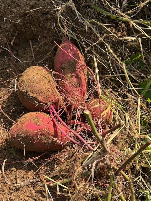 天城山々が紅葉しはじめるころ、サツマイモの収穫が始まります。